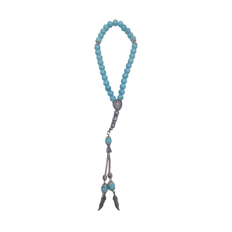 Rozariu turcesc cu 2 capete cu model, culoare turcuaz, l27 cm x 9 mm, EHA - Frunza Rozariu turcesc cu 2 capete cu model, culoare turcuaz, l27 cm x 9 mm, EHA - Frunza