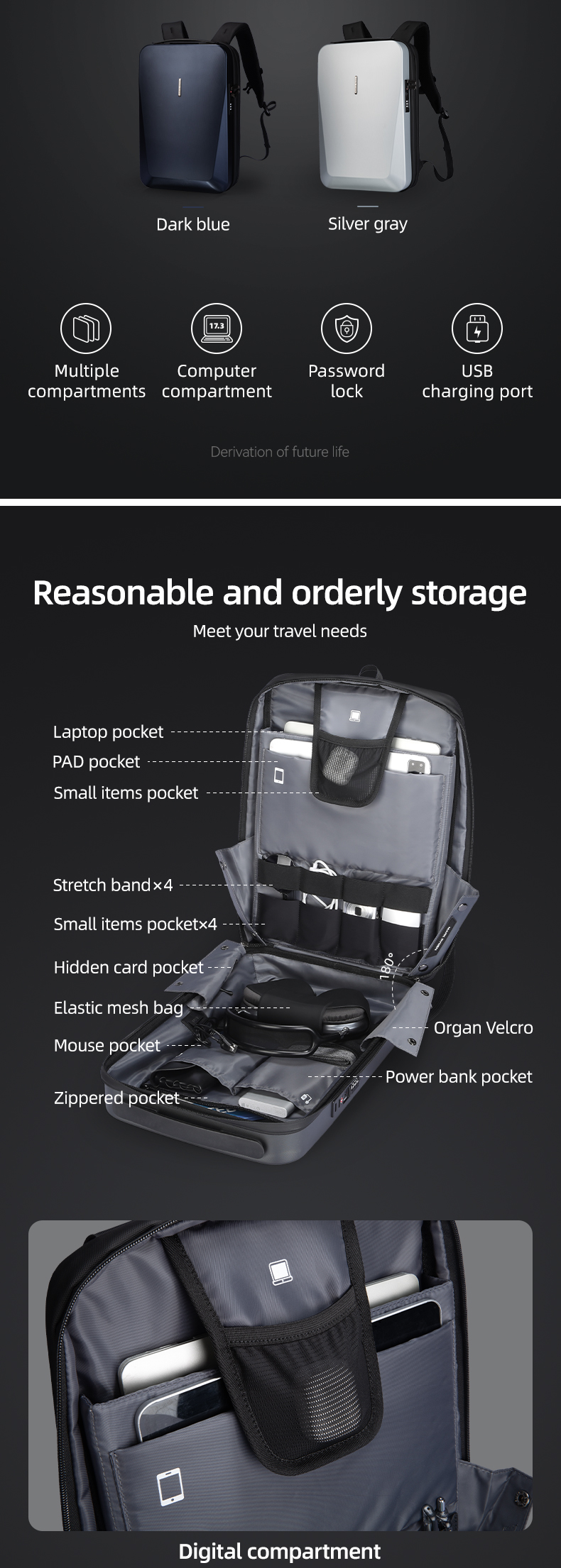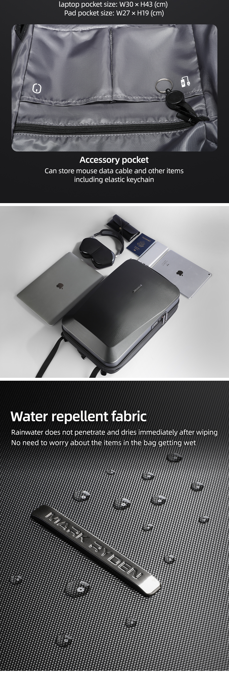 Compartiment principal: Capacitate mare cu diverse pungi de depozitare pentru articole mici pentru o organizare convenabila.