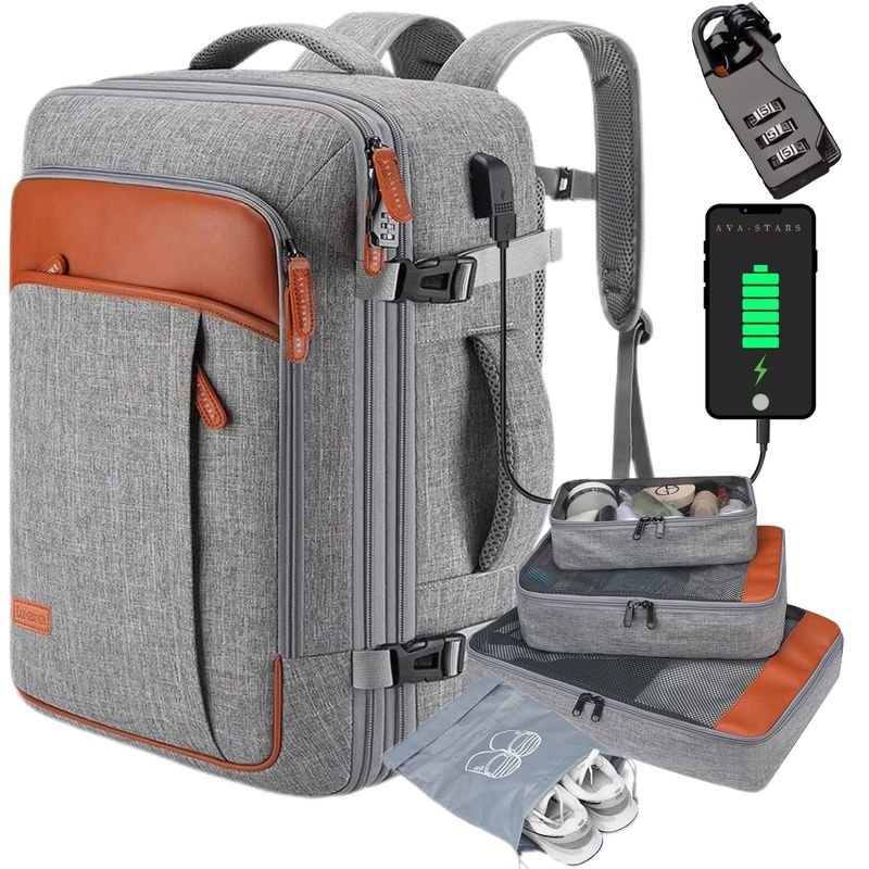 Rucsac de calatorie unisex, ideal ca bagaj de mana in avion. Extensibil de la 35L la 42L, cu port USB pentru incarcare, cifru de siguranta, compartiment laptop pana la 17 inch, husa pentru pantofi, buzunare multiple pentru haine si accesorii. Construit din materiale premium, impermeabil si rezistent – perfect pentru zboruri, city break-uri sau naveta zilnica.