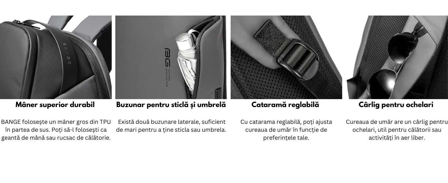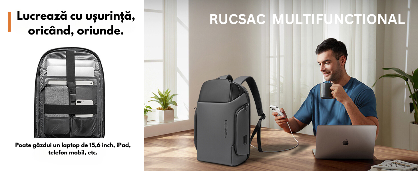 Acest rucsac de calatorie inteligent ofera o solutie completa pentru cei care cauta sa combine stilul modern cu functionalitatea practica. Ideal pentru profesionistii in miscare, rucsacul este echipat cu multiple functii care asigura o organizare eficienta si o protectie superioara pentru echipamentele dumneavoastra.