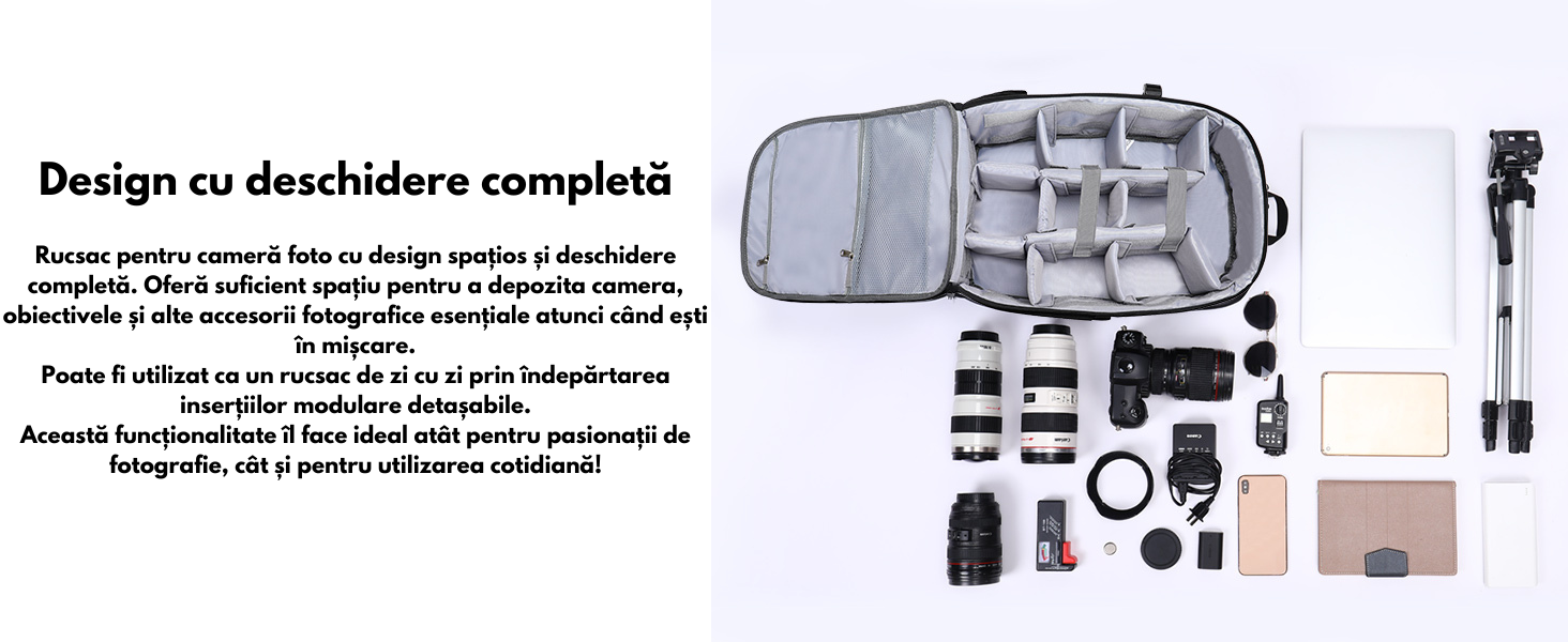 Perfect pentru: Barbati si femei pasionati de fotografie si calatorii, oferind protectie maxima, confort si organizare excelenta.