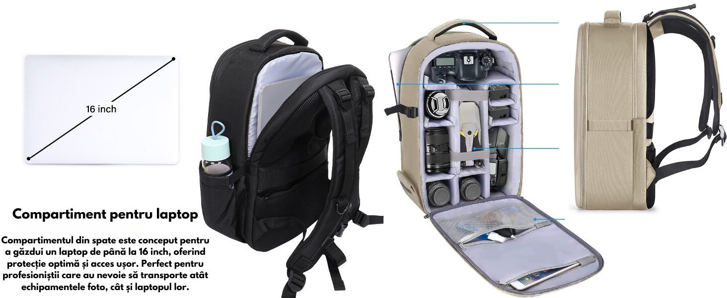 Perfect pentru: Barbati si femei pasionati de fotografie si calatorii, oferind protectie maxima, confort si organizare excelenta.