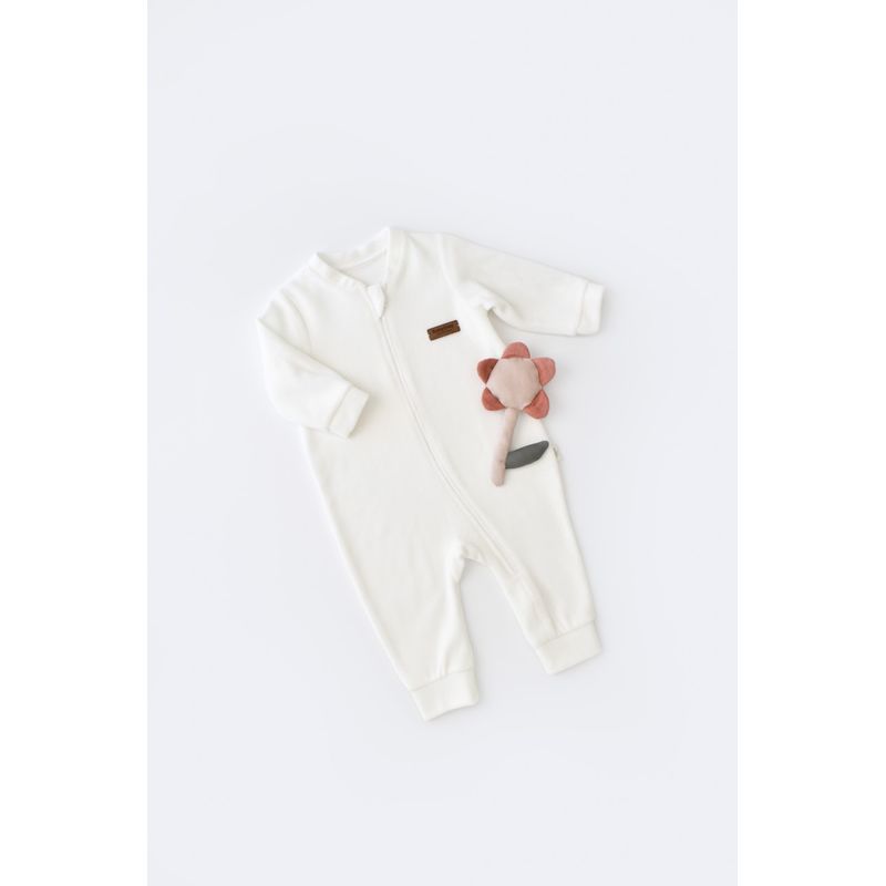 Fashion, accesorii si bijuteriiCopiiImbracaminte copiiSalopete copiiSalopeta cu maneca lunga si fermoar din 80%bumbac organic si 20% poliester - Ecru, BabyCosy (Marime: 18-24 Luni)