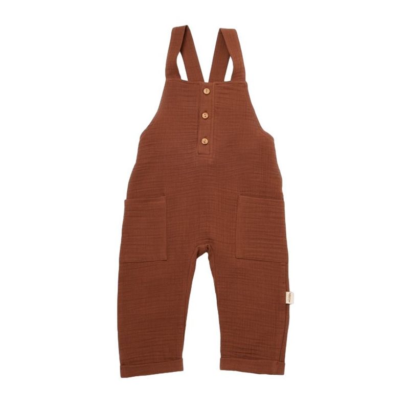 Salopeta de vara cu buzunare din muselina, BabyCosy, 100% bumbac organic, caramiziu (Marime: 9-12 luni) Salopeta de vara cu buzunare din muselina, BabyCosy, 100% bumbac organic, caramiziu (Marime: 9-12 luni)