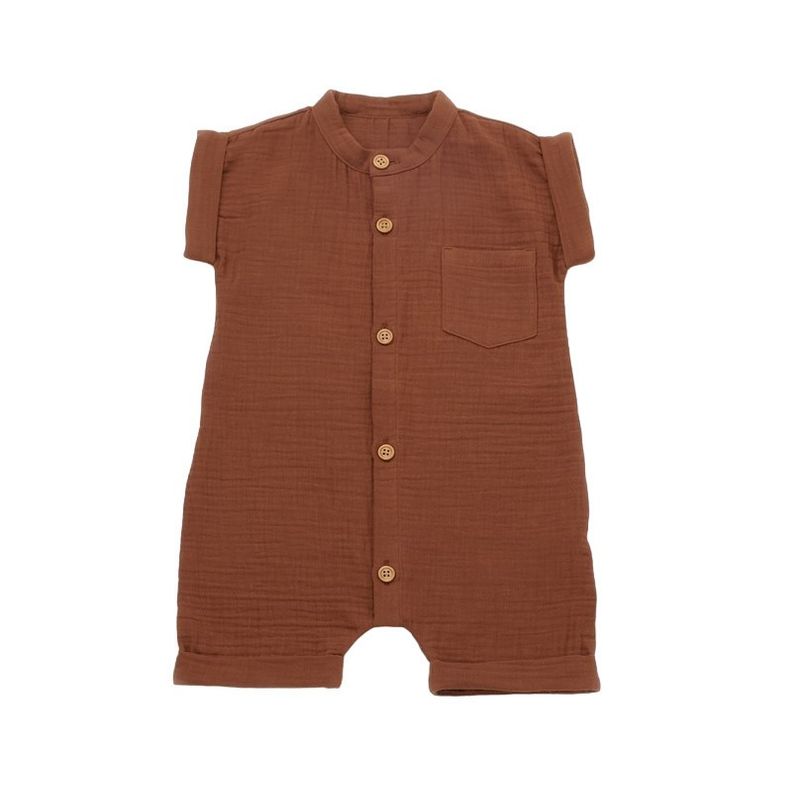 Salopeta de vara din muselina, BabyCosy, 100% bumbac organic, caramiziu (Marime: 9-12 luni) Salopeta de vara din muselina, BabyCosy, 100% bumbac organic, caramiziu (Marime: 9-12 luni)