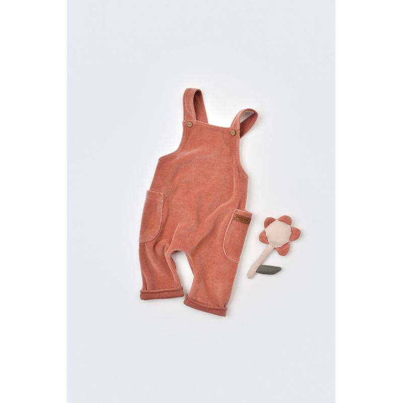 Fashion, accesorii si bijuteriiCopiiImbracaminte copiiSalopete copiiSalopeta Velvet cu bretele din 80%bumbac organic si 20% poliester - Caramiziu, BabyCosy (Marime: 12-18 Luni)