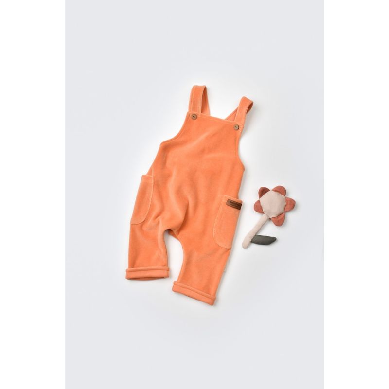 Fashion, accesorii si bijuteriiCopiiImbracaminte copiiSalopete copiiSalopeta Velvet cu bretele din 80%bumbac organic si 20% poliester - Portocaliu, BabyCosy (Marime: 3-6 Luni)