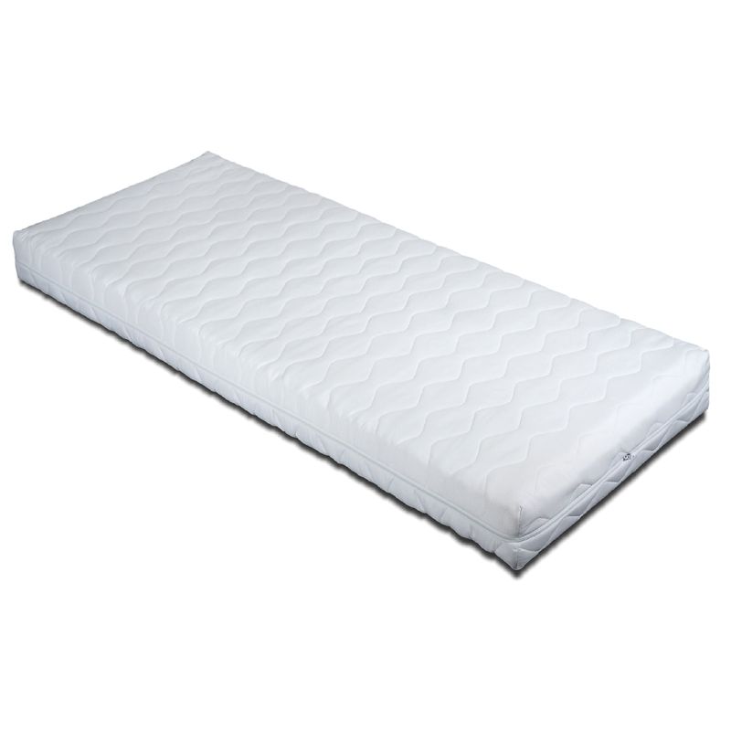 – pe a doua parte: stratul de spuma poliuretan ferma de 18 cm ce combina cu succes fermitatea, elasticitatea si durabilitatea, oferind astfel acelasi grad de confort chiar si dupa ani de folosire. Densitatea stratului de spuma: 26 kg/mc;
