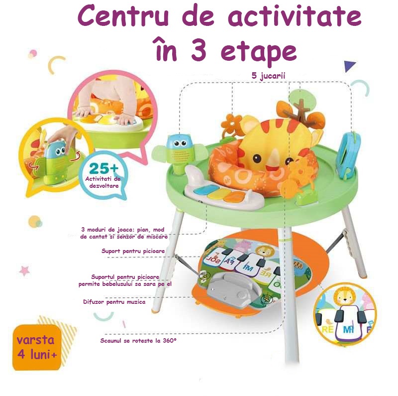 Scaun de hranire/ Masa de desen/ Statie de joaca este proiectat cu ideea de a imbunatati activitatile bebelusului si invatarea prin joc