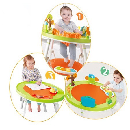 Trambulina vine cu functii 3 in 1, indeparteaza jucariile pentru a le transforma in scaun de hranire, indeparteaza scaunul si fixeaza baza pentru a face o statie de joaca pentru copilul tau si scoate toate jucariile din statia de joaca pentru a o transforma in masa de desen/masa de studiu pentru copii . Micutul tau va avea o zi plina de distractie cand va fi in acest centru de activitati confortabil.