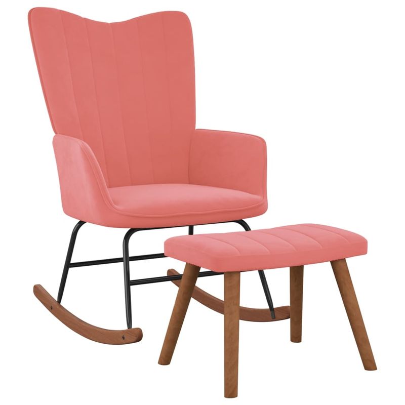 Scaun balansoar cu taburet, roz, catifea Scaun balansoar cu taburet, roz, catifea