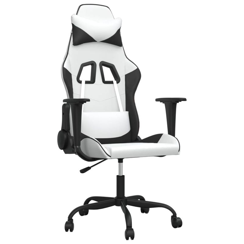 Scaun de gaming de masaj, alb si negru, piele ecologica Scaun de gaming de masaj, alb si negru, piele ecologica