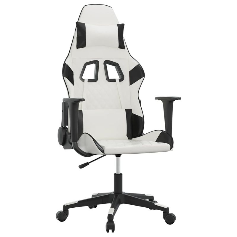Scaun de gaming de masaj, alb si negru, piele ecologica Scaun de gaming de masaj, alb si negru, piele ecologica