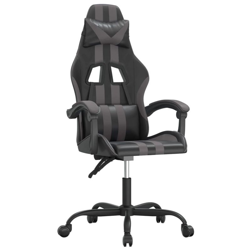 Scaun de gaming pivotant, negru si gri, piele ecologica Scaun de gaming pivotant, negru si gri, piele ecologica