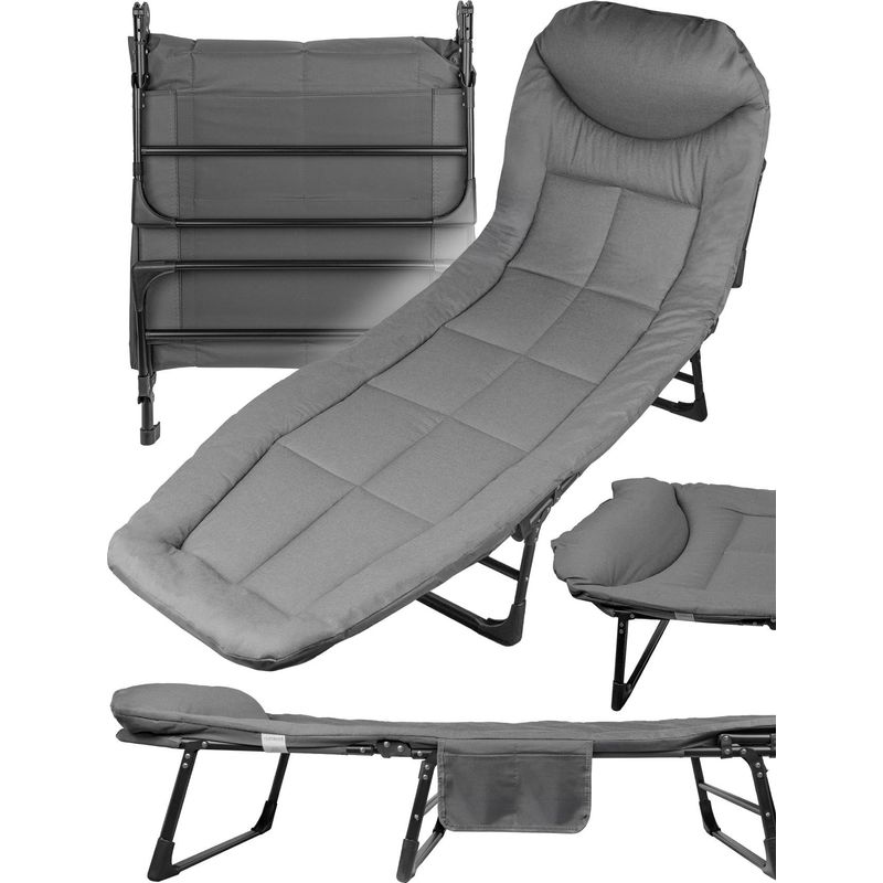 Un pat de calatorie cu o pozitie semi-sezand sau culcat este o solutie extrem de versatila pentru persoanele care cauta relaxare confortabila in aer liber. Cu posibilitatea de a regla spatarul in sase pozitii diferite de inclinare, acest sezlong va ofera flexibilitatea de a va adapta preferintelor dumneavoastra.