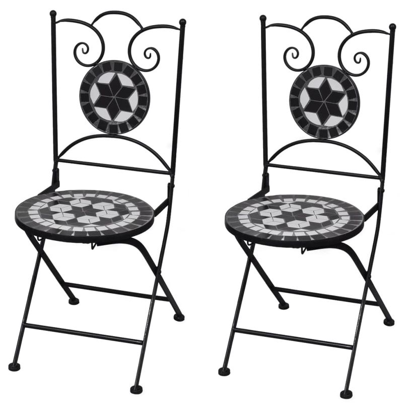 Scaune bistro pliante Scaune bistro pliante, 2 buc., negru si alb, ceramica