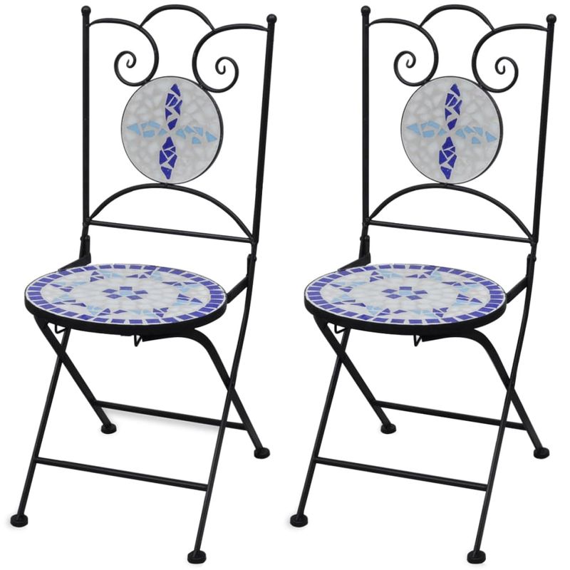 Scaune bistro pliante Scaune bistro pliante, 2 buc., albastru si alb, ceramica