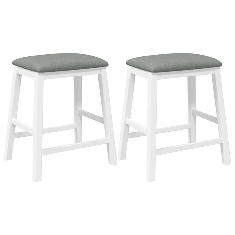 Scaune de bar cu perne 2 buc din cauciuc din lemn masiv alb Scaune de bar cu perne 2 buc din cauciuc din lemn masiv alb