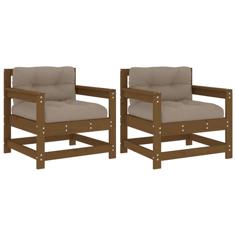 Scaune de gradina cu perne 2 buc. maro miere lemn masiv de pin Scaune de gradina cu perne 2 buc. maro miere lemn masiv de pin