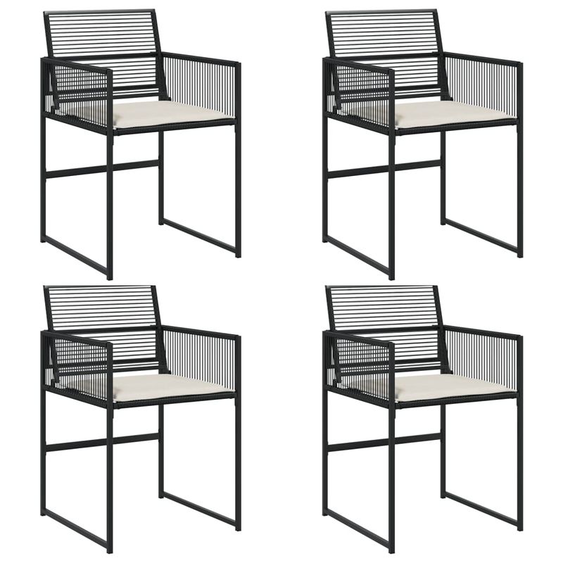Scaune de gradina cu perne, 4 buc., negru, poliratan Scaune de gradina cu perne, 4 buc., negru, poliratan