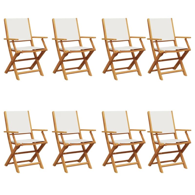 Scaune de gradina pliabile 8 buc., textil alb crem/lemn masiv Scaune de gradina pliabile 8 buc., textil alb crem/lemn masiv