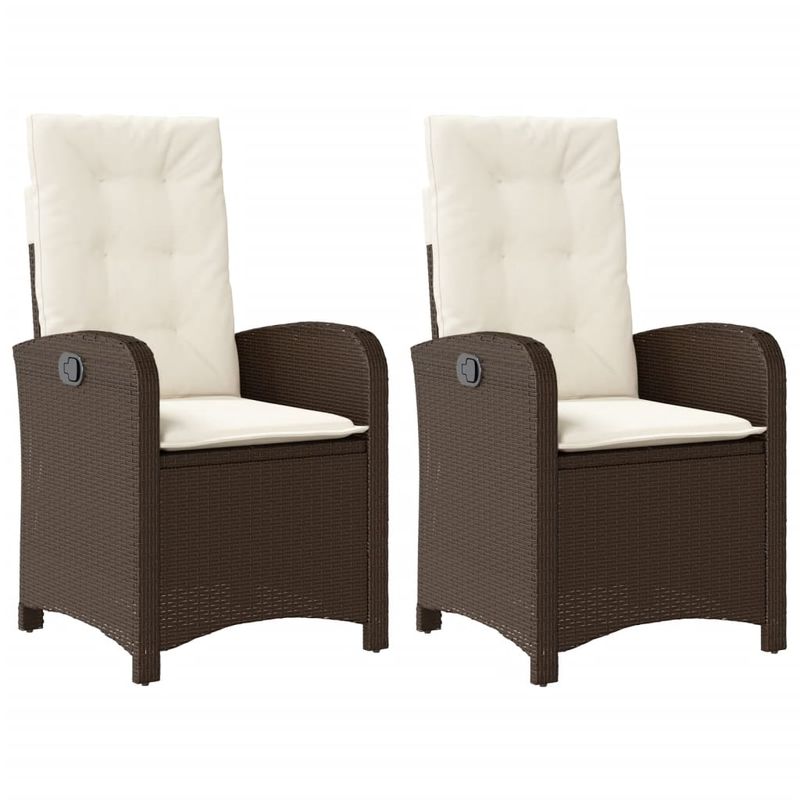 Scaune de gradina rabatabile, 2 buc., cu perne, maro, poliratan Scaune de gradina rabatabile, 2 buc., cu perne, maro, poliratan