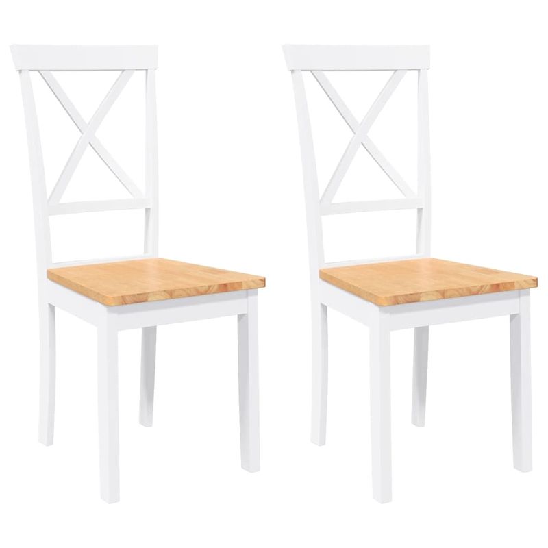 Scaune de sufragerie 2 buc Cauciuc din lemn masiv alb Scaune de sufragerie 2 buc Cauciuc din lemn masiv alb