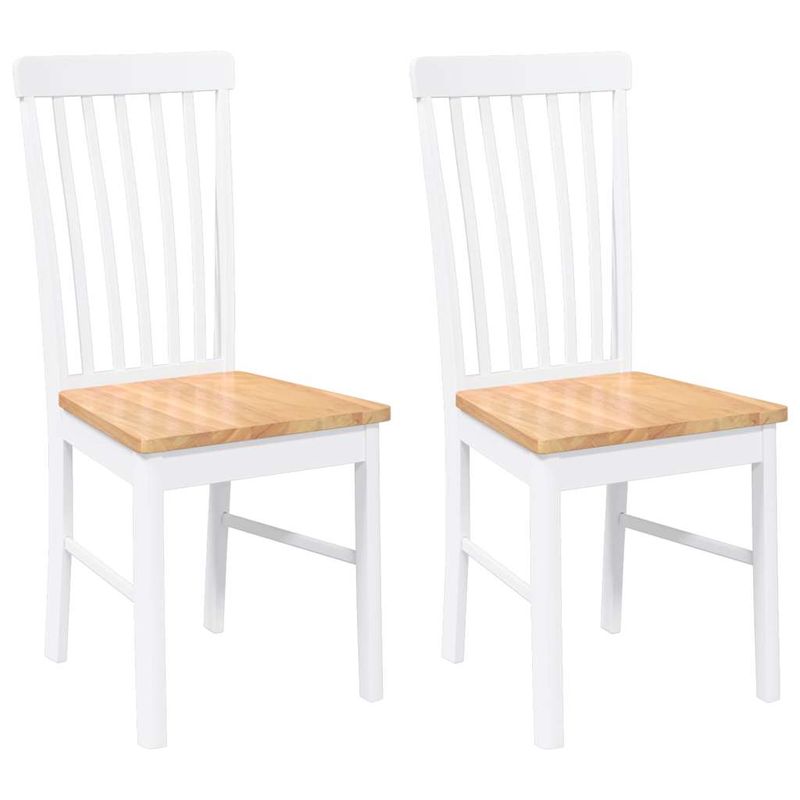 Scaune de sufragerie 2 buc Cauciuc din lemn masiv alb Scaune de sufragerie 2 buc Cauciuc din lemn masiv alb