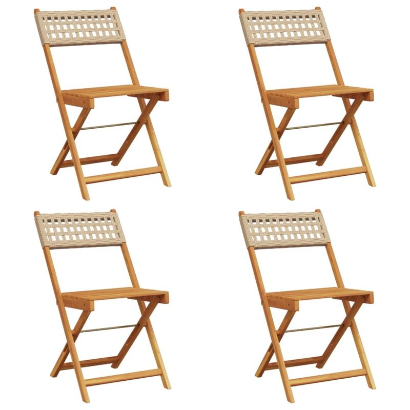 Scaune gradina pliabile 4 buc., bej, poliratan si lemn masiv Scaune gradina pliabile 4 buc., bej, poliratan si lemn masiv