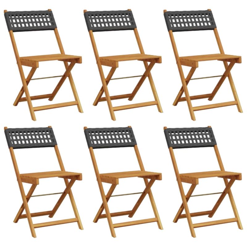 Scaune gradina pliabile 6 buc., negru, poliratan si lemn masiv Scaune gradina pliabile 6 buc., negru, poliratan si lemn masiv