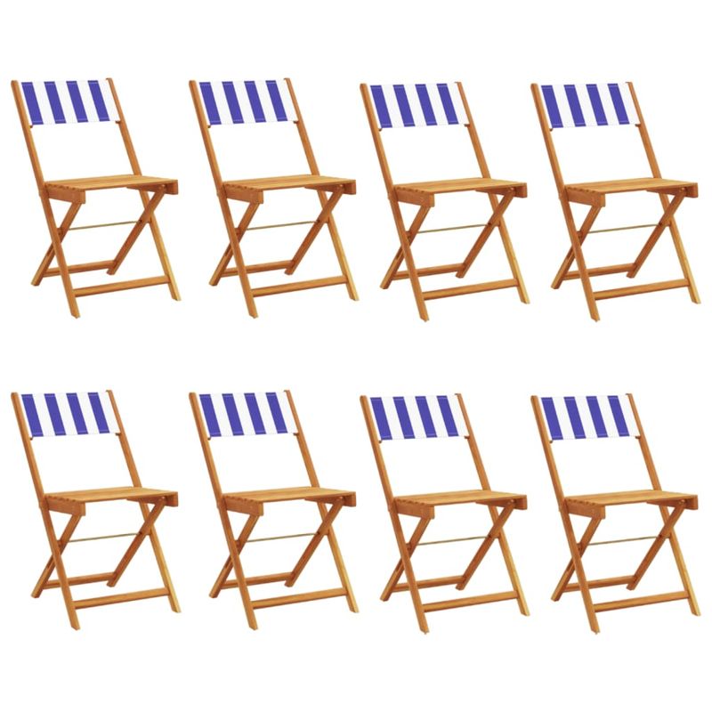 Scaune gradina pliabile 8 buc., textil albastru alb/lemn masiv Scaune gradina pliabile 8 buc., textil albastru alb/lemn masiv