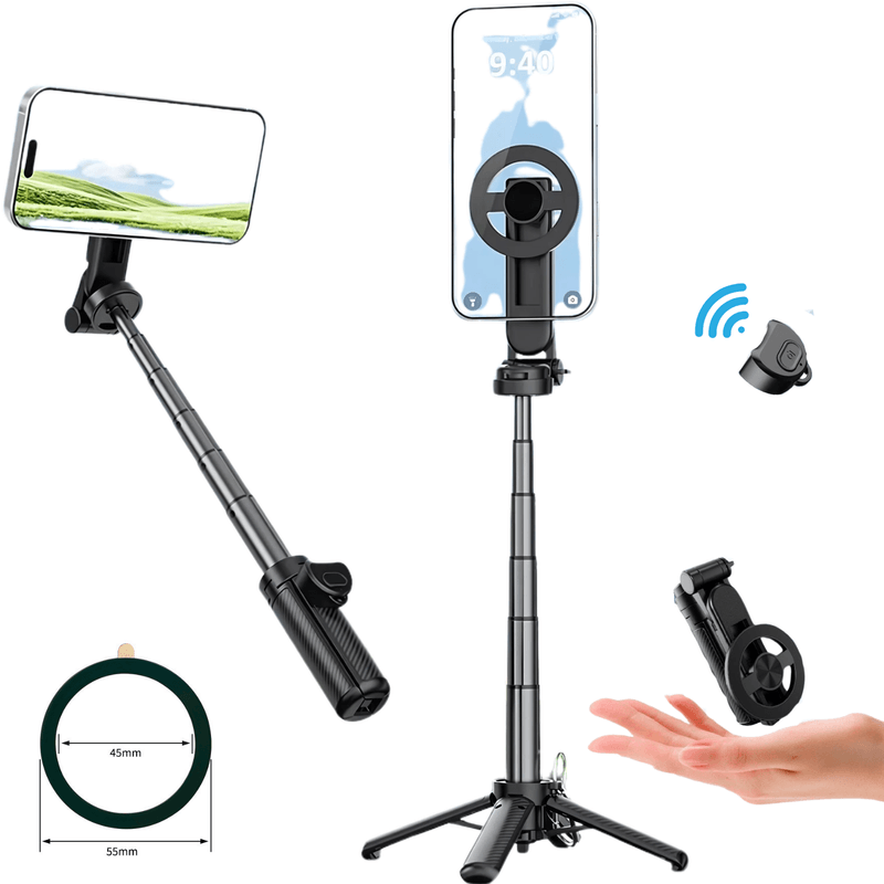 Selfie Stick de buzunar cu prindere magnetica, Tija Aluminiu, Pliat 11cm - Extins 44 cm, Compatibil Android/IOS, Negru Selfie Stick de buzunar cu prindere magnetica, Tija Aluminiu, Pliat 11cm - Extins 44 cm, Compatibil Android/IOS, Negru