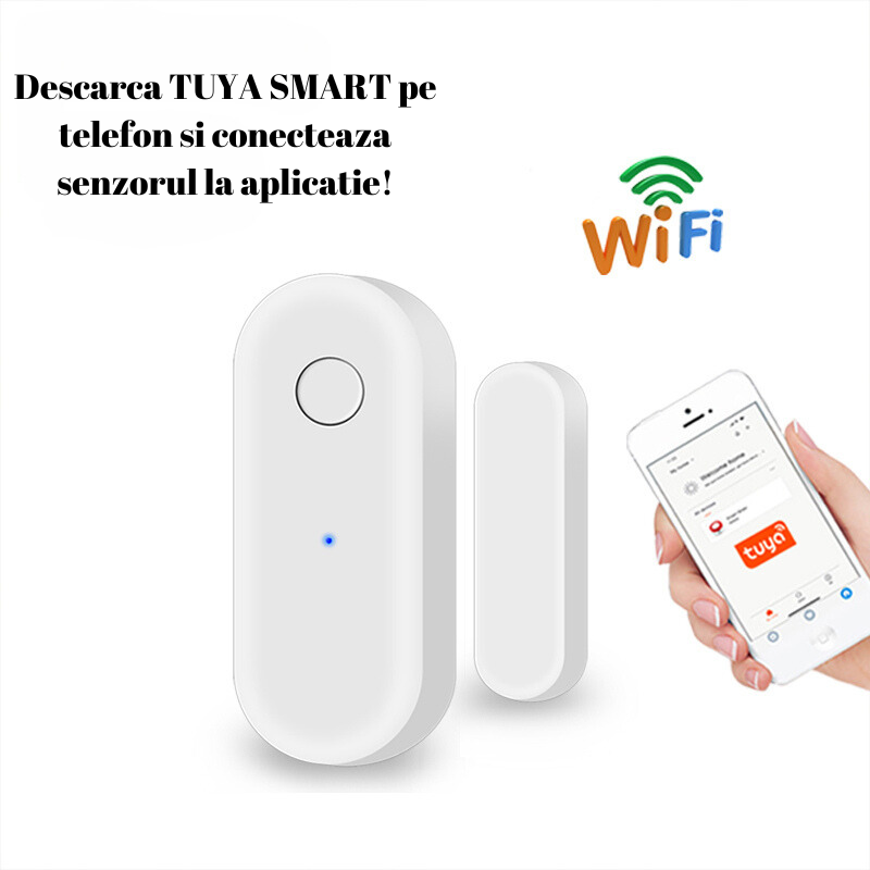 Senzorul inteligent WiFi este un dispozitiv inovator care are capacitatea de a detecta deschiderea usilor si ferestrelor, oferind astfel o solutie eficienta pentru securitatea casei tale. Acest senzor este proiectat pentru a fi utilizat in scopuri de securitate si poate fi integrat in sistemul tau smart home.