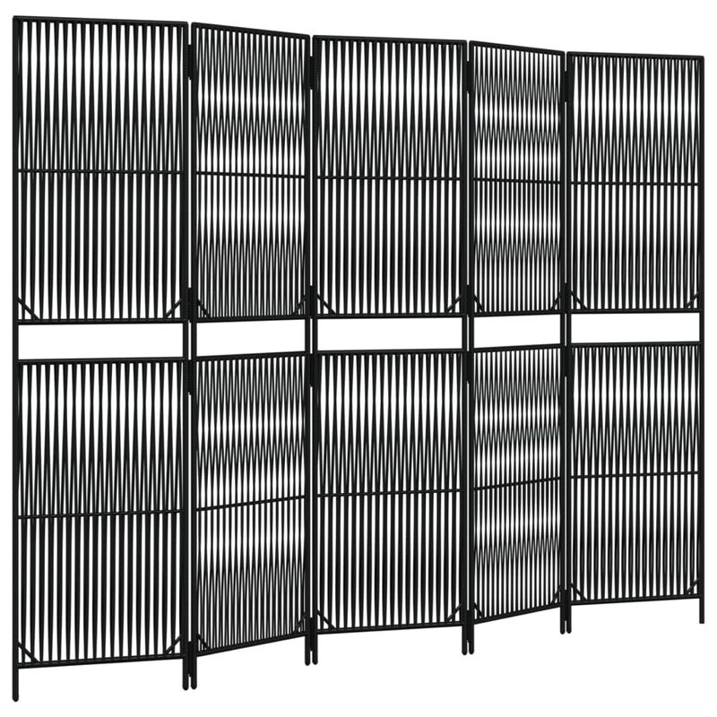 Casa si GradinaDecoratiuniPereti despartitori si paravaneSeparator de camera cu 5 panouri, negru, poliratan, model țesătură cu linii, mărime 245x180 cm
