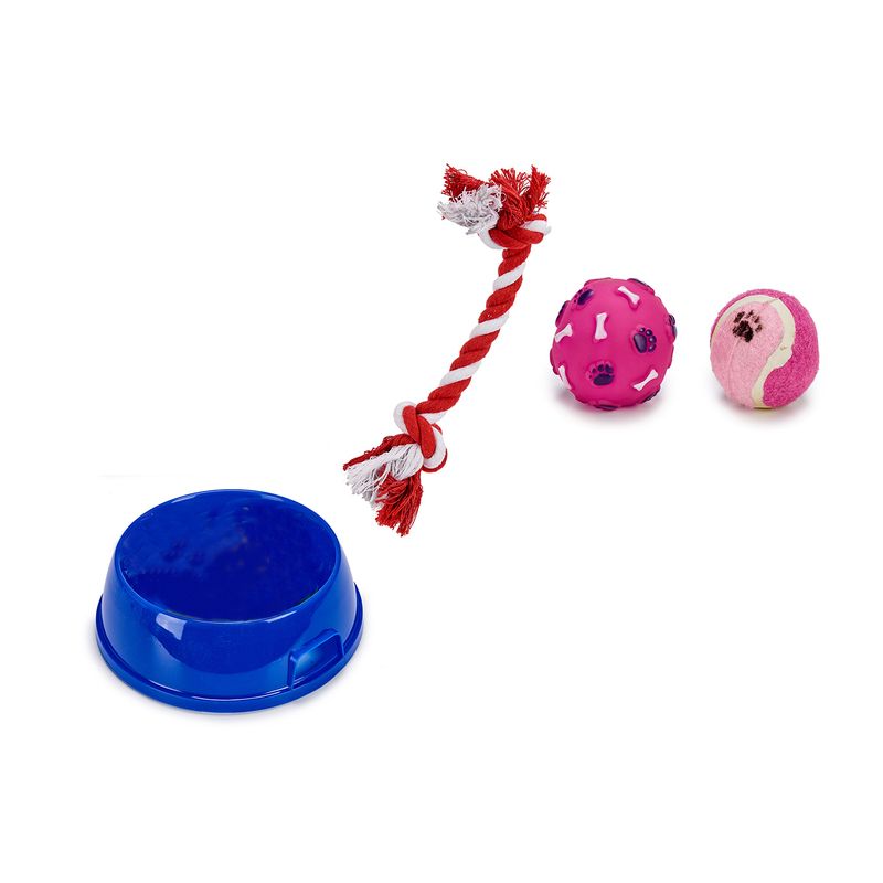 Set 1 castron si 3 jucarii pentru ros Set 1 castron si 3 jucarii pentru ros, albastru