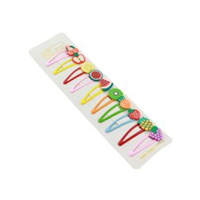Set 10 clame de par pentru fetite, model fructe, multicolor Set 10 clame de par pentru fetite, model fructe, multicolor