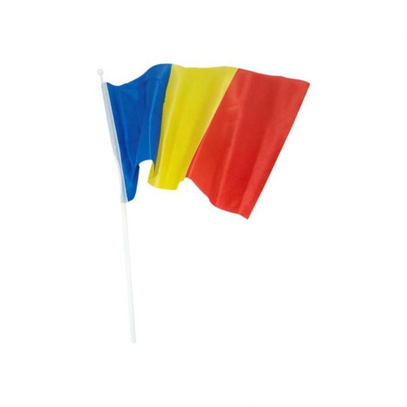 Set 10 Steagulete tricolore textil, 30 cm x 20, cm cu bat din plastic, Romania / flag / drapel Set 10 Steagulete tricolore textil, 30 cm x 20, cm cu bat din plastic, Romania / flag / drapel