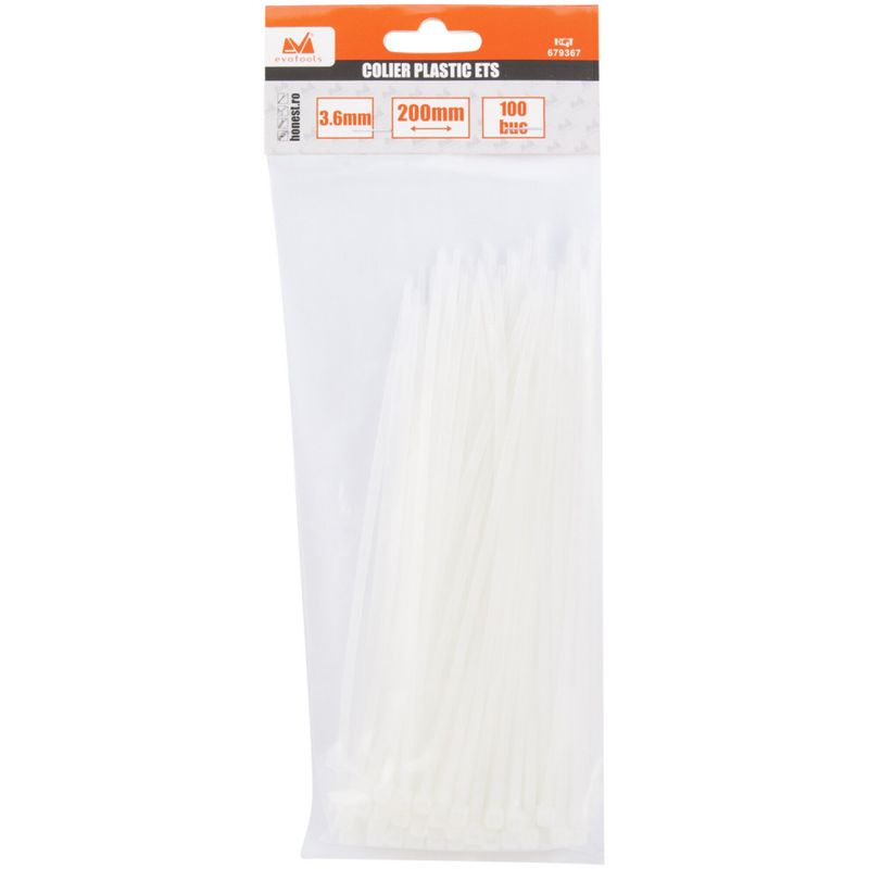 Set 100 buc coliere (soricei) plastic EvoTools 679367, 3.6x200 mm Set 100 buc coliere (soricei) plastic EvoTools 679367, 3.6x200 mm