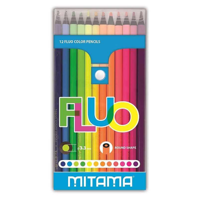 Set 12 Creioane colorate Fluorescente Mitama, reciclabile, multicolor Set 12 Creioane colorate Fluorescente Mitama, reciclabile, multicolor