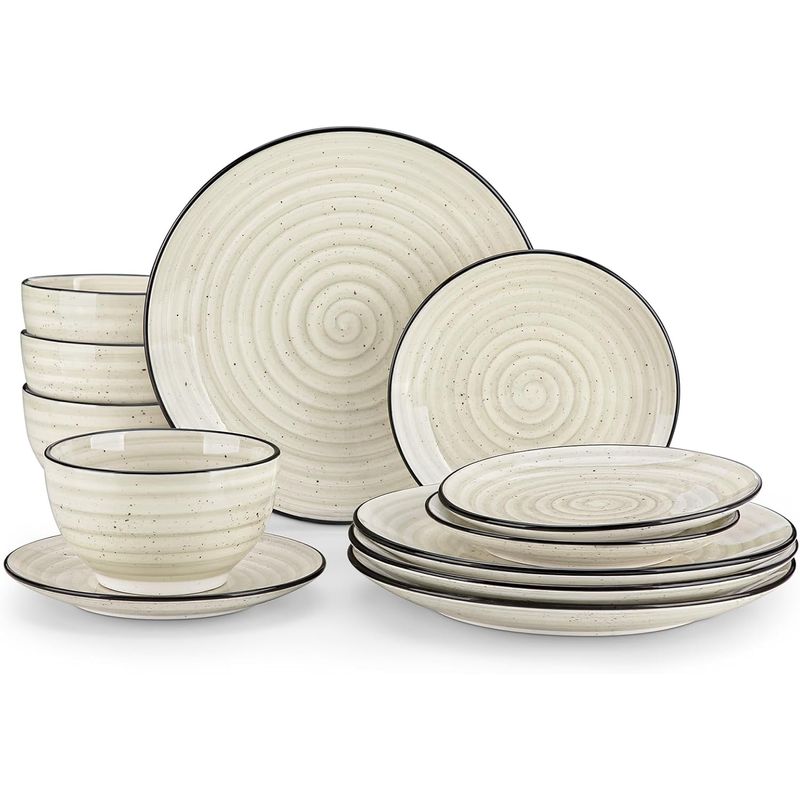 Model spirals pictat manual pentru un aspect artistic si modern. Detaliile sunt realizate cu grija, conferind personalitate fiecarei farfurii si fiecarui bol. Vesela este potrivita atat pentru utilizarea zilnica, cat si pentru mesele festive.