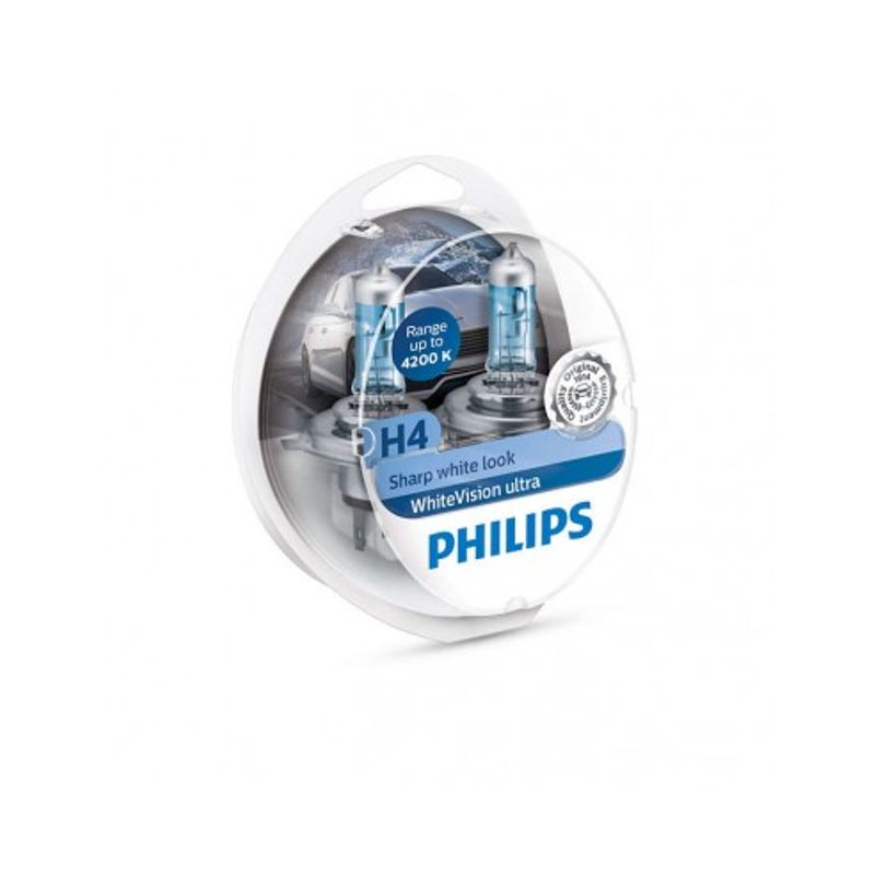 Set 2 Becuri Auto Halogen Philips H4 WhiteVision Ultra, 12V, 60/55W Set 2 Becuri Auto Halogen Philips H4 WhiteVision Ultra, 12V, 60/55W