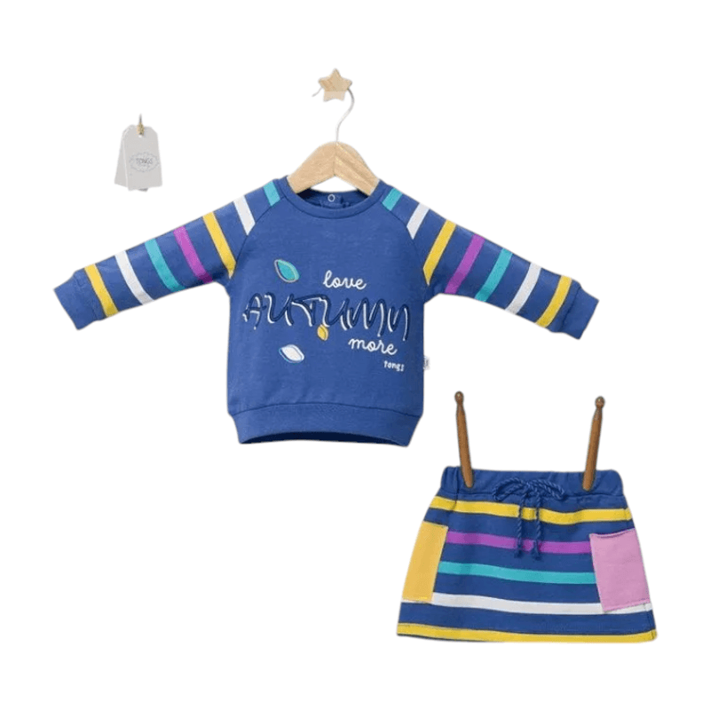 Set 2 piese cu bluzita si fustita pentru fetite Colorful autum, Tongs baby Set 2 piese cu bluzita si fustita pentru fetite Colorful autum, Tongs baby, albastru, marime 6-9 luni