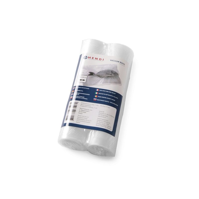 Set 2 role pungi vacuum gofrate Hendi, 200x6000 mm, 2 starturi, grosime 75 microni, filtru UV.