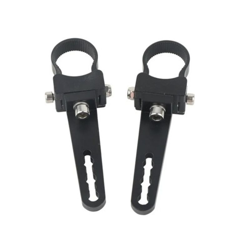Acest set de suporti universali este conceput pentru a permite montajul proiectoarelor pe bare cu un diametru maxim de 1.5 inch. Suportii sunt realizati pentru a oferi stabilitate si siguranta in utilizare. Este un accesoriu util in instalatiile de iluminat si proiectie.