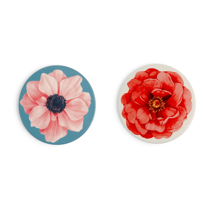 Set 2 suporturi ceramica cu imprimeu floral, rotund 20 cm, roz-rosu Set 2 suporturi ceramica cu imprimeu floral, rotund 20 cm, roz-rosu