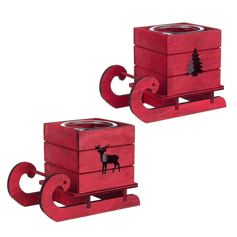 Set 2 suporturi lumanari din lemn rosu si sticla model Sanie 16x9x12 cm Set 2 suporturi lumanari din lemn rosu si sticla model Sanie 16x9x12 cm