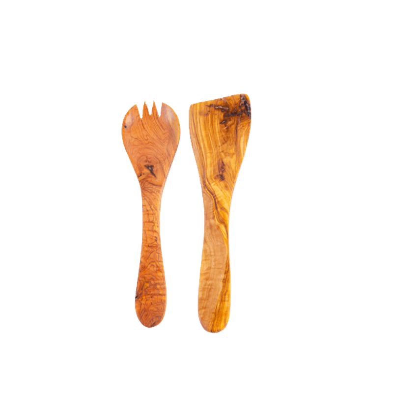 Set 2 ustensile, spatula si furculita din lemn de maslin 25 cm Set 2 ustensile, spatula si furculita din lemn de maslin 25 cm