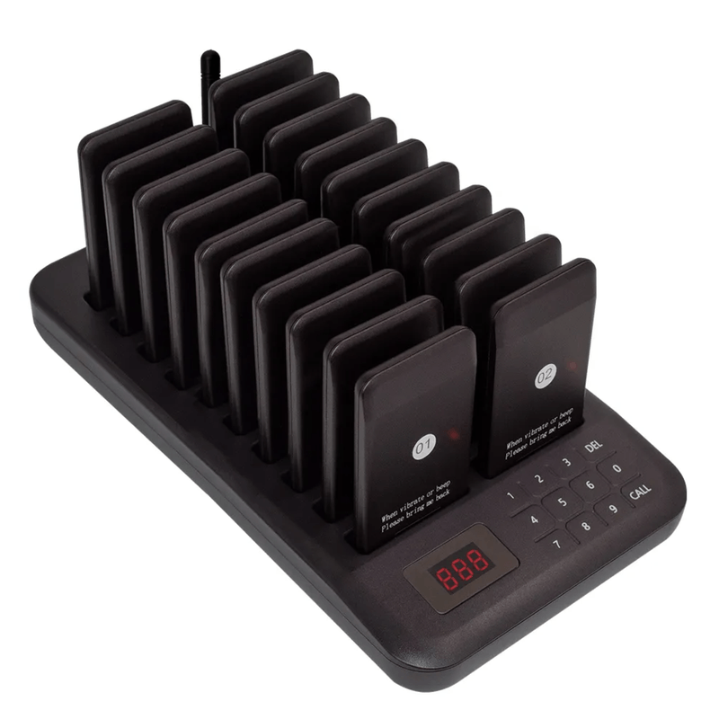 20 de pagere cu sunet si vibratii: Cu cele 20 de pagere incluse, puteti deservi simultan un numar mare de oaspeti. Fiecare semnalizator vibreaza discret pentru a anunta clientii ca este pregatita comanda lor.