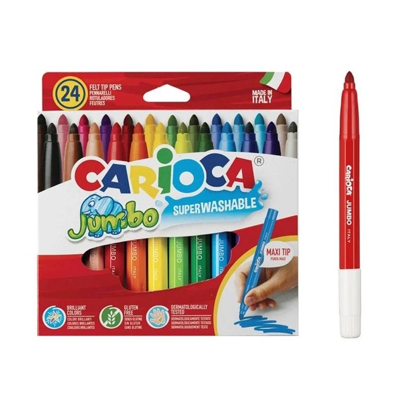 Set de 24 carioci lavabile cu varf gros, ideale pentru desen si colorat. Cariocile sunt non-toxice, au capace ventilate pentru siguranta si vin in culori vibrante.