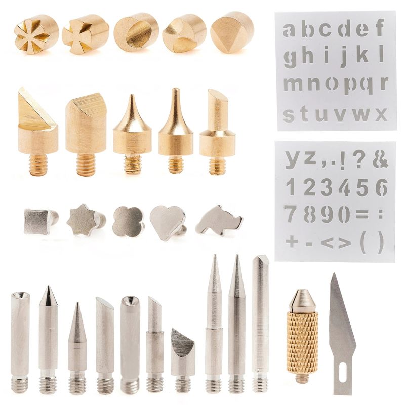 Set 28 piese varfuri si capete de schimb pentru letcon, GlowforHome, pentru gravura si statia de lipit, Auriu/Argintiu Set 28 piese varfuri si capete de schimb pentru letcon, GlowforHome, pentru gravura si statia de lipit, Auriu/Argintiu